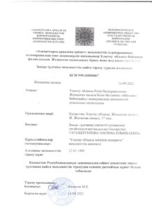 Жұмыс күнінің тәртібі: аптасына 5 күндік , жұмыс уақытының ұзақтығы-12 сағат, күнделікті жұмыс сағаты  7.00 -дан 19.00- ге дейін.