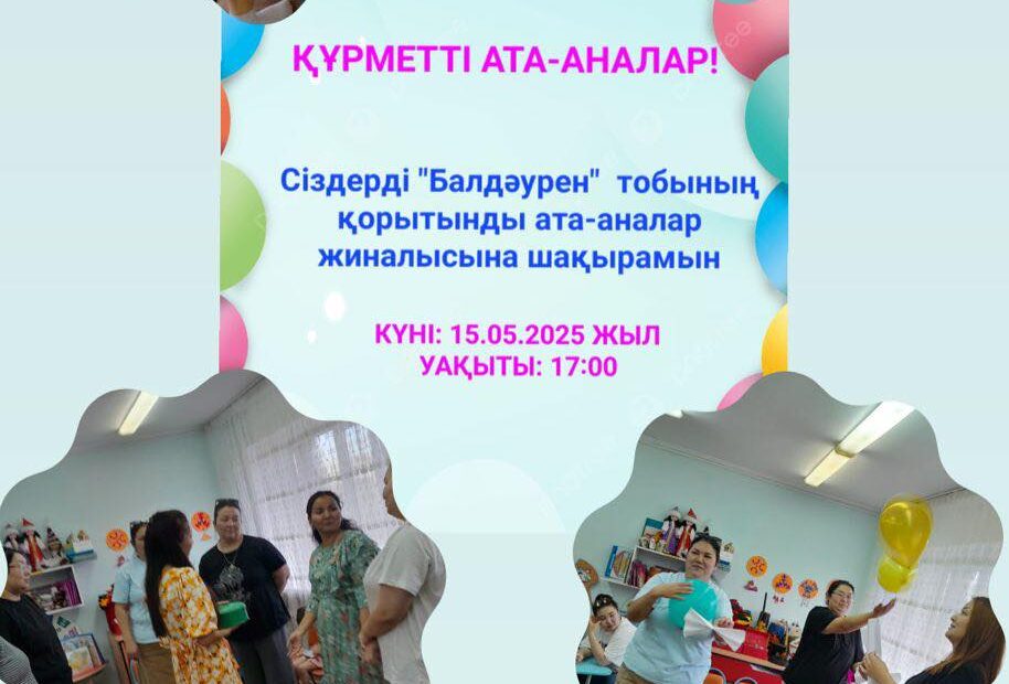 Мектепалды “Балдәурен” тобында өтілген қорытынды ата-аналар жиналысы. Тәрбиеші: М.Н.ОспановаMay 16, 2025